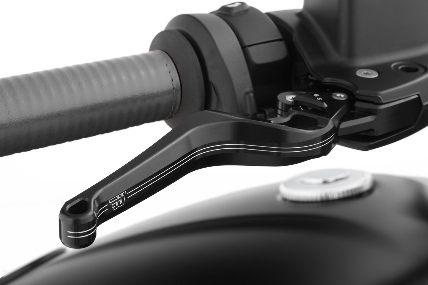 As manetes do travão e da embraiagem deste conjunto em alumínio fresado de alta resistência e anodizado a preto combinam, assim, um trabalho artesanal perfeito e uma ergonomia perfeita com a melhor sensação de aderência.