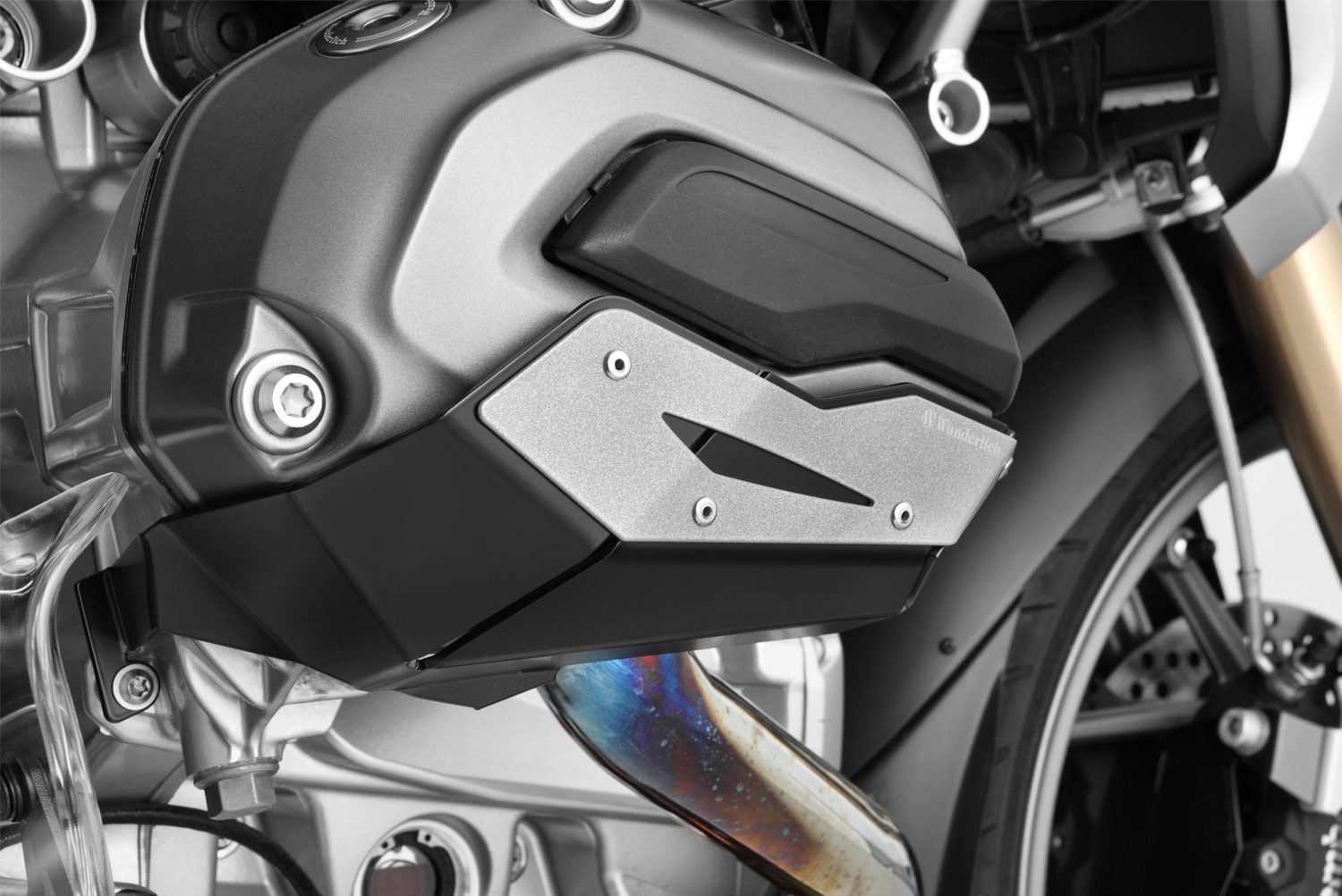 Nota: Os protetores podem ser facilmente instalados com as barras de proteção originais BMW (aplica-se apenas ao R1200 GS LC -2016). Na instalação com barras de proteção Wunderlich é necessário o kit de montagem 35611-000);